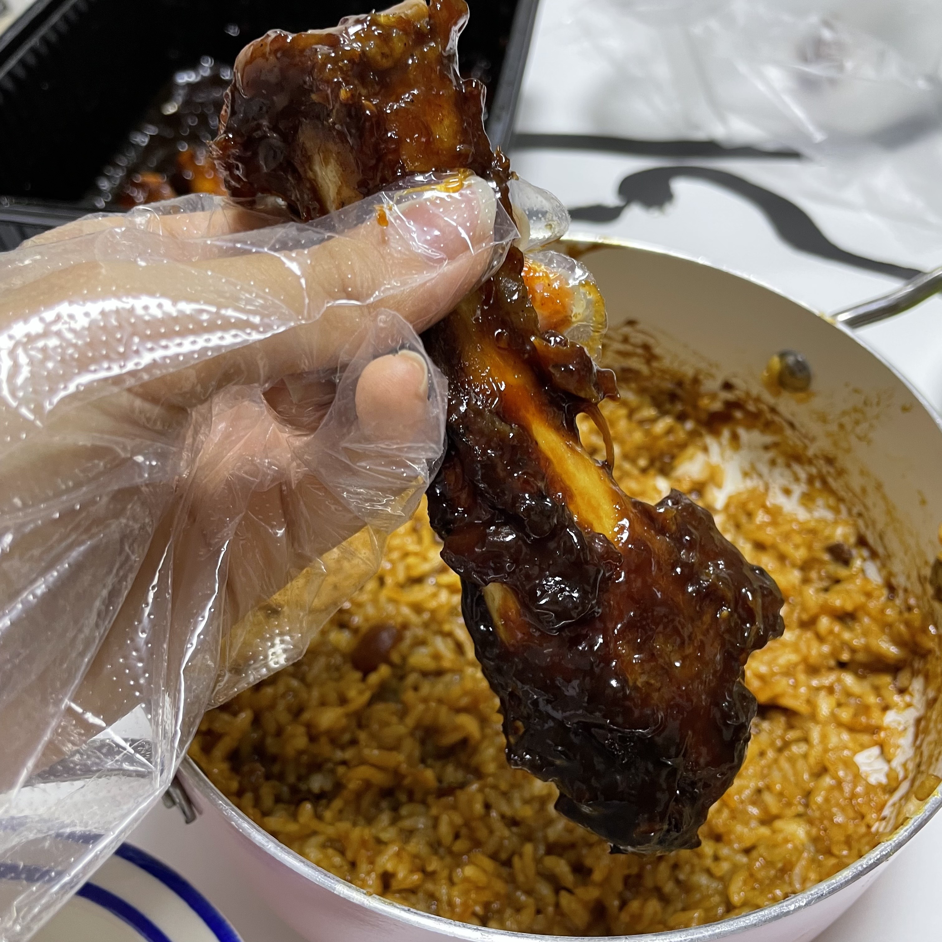 볶음밥을 남은 뼈와 함께 먹어줍니다.