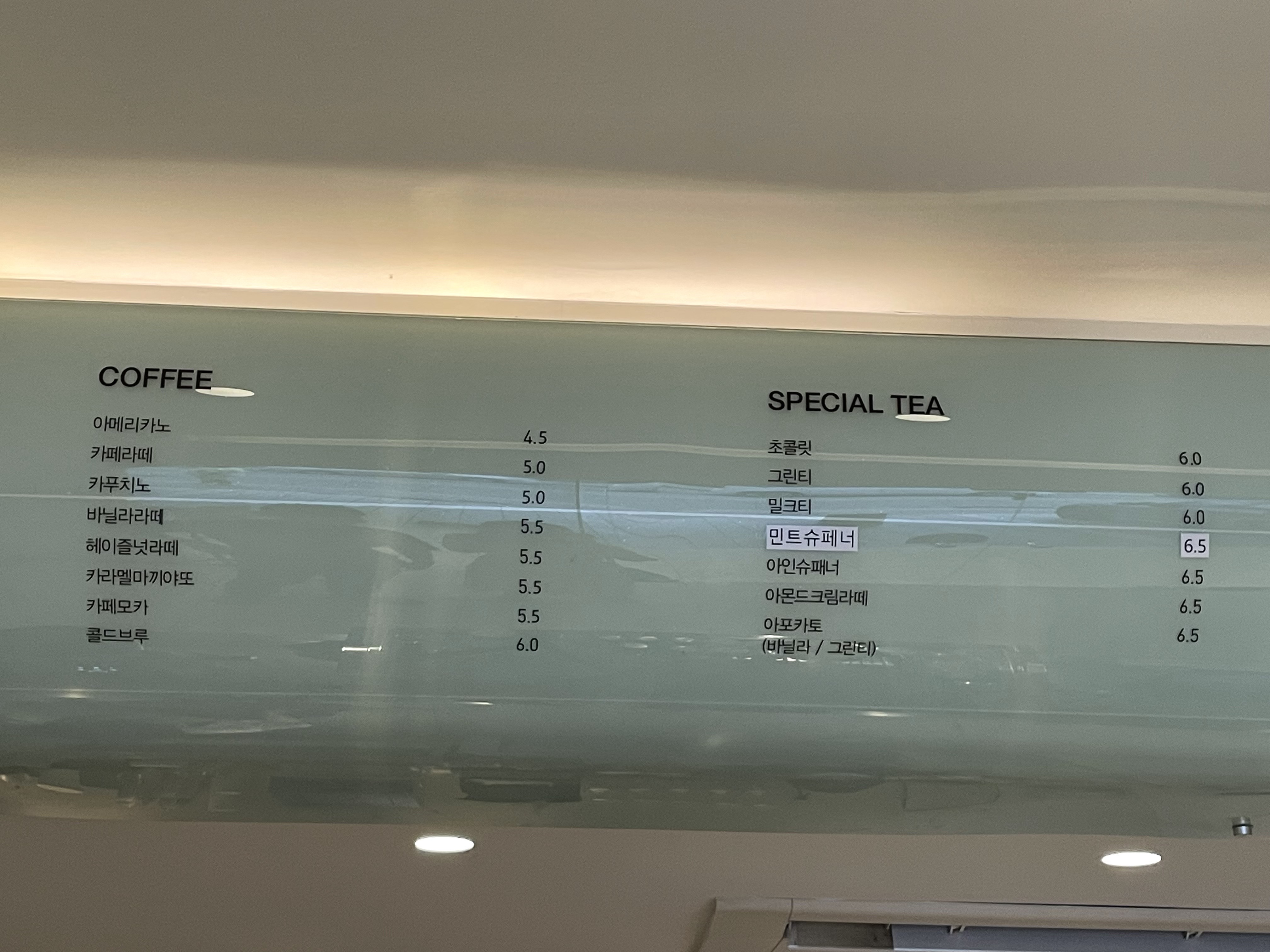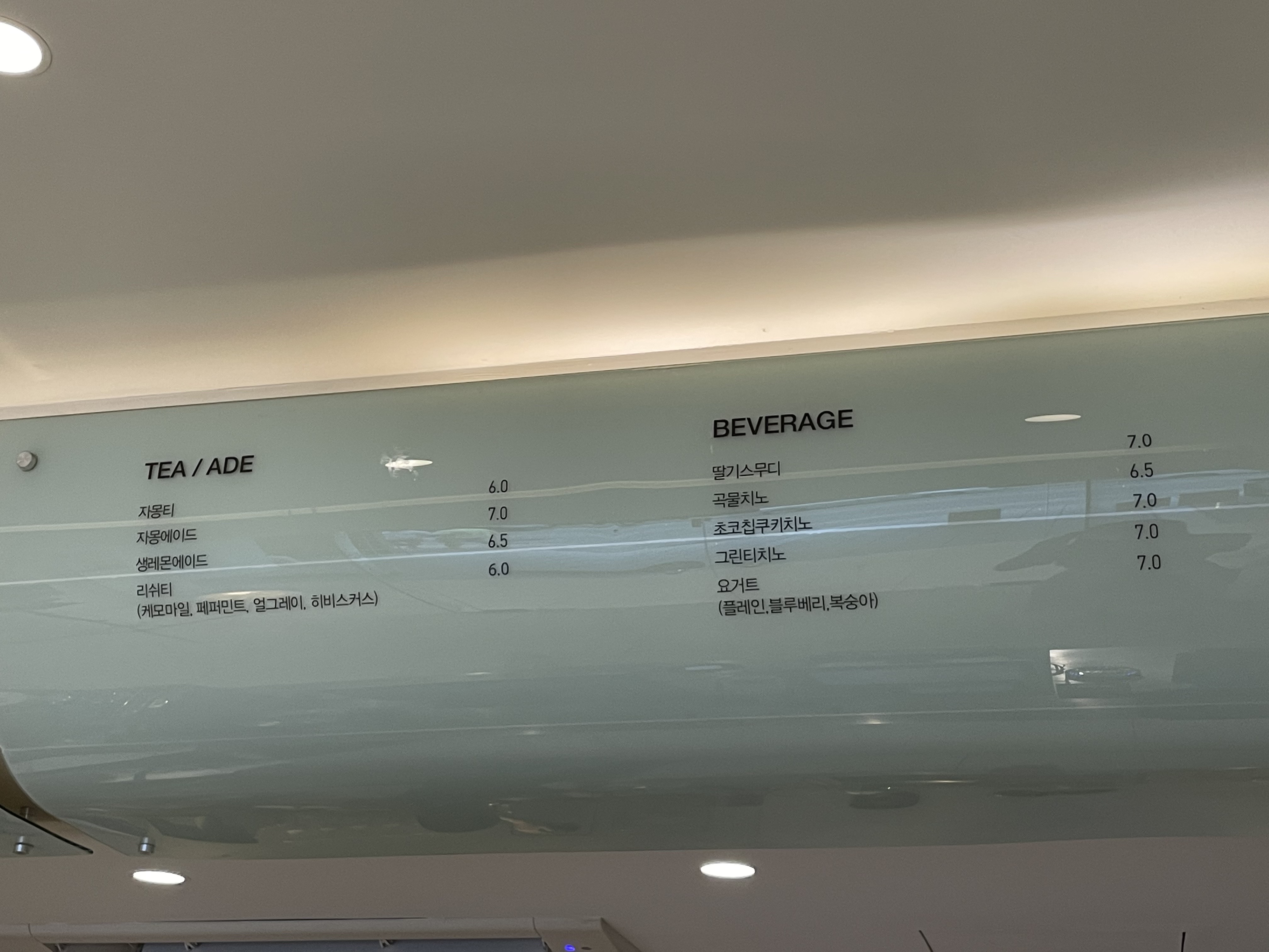 TCC 음료 메뉴입니다.