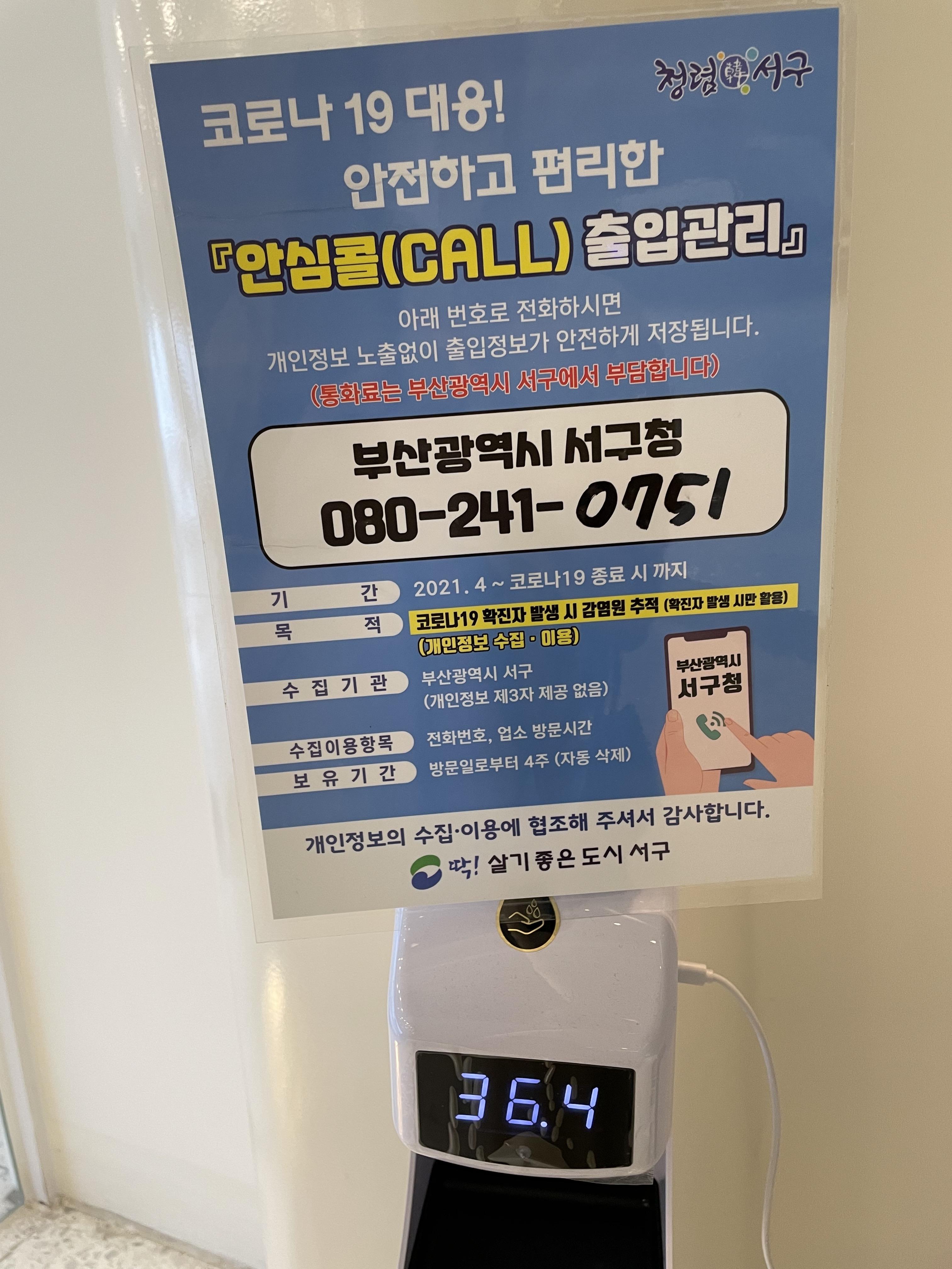 체온측정, 손소독, 안심콜을 해줍니다.