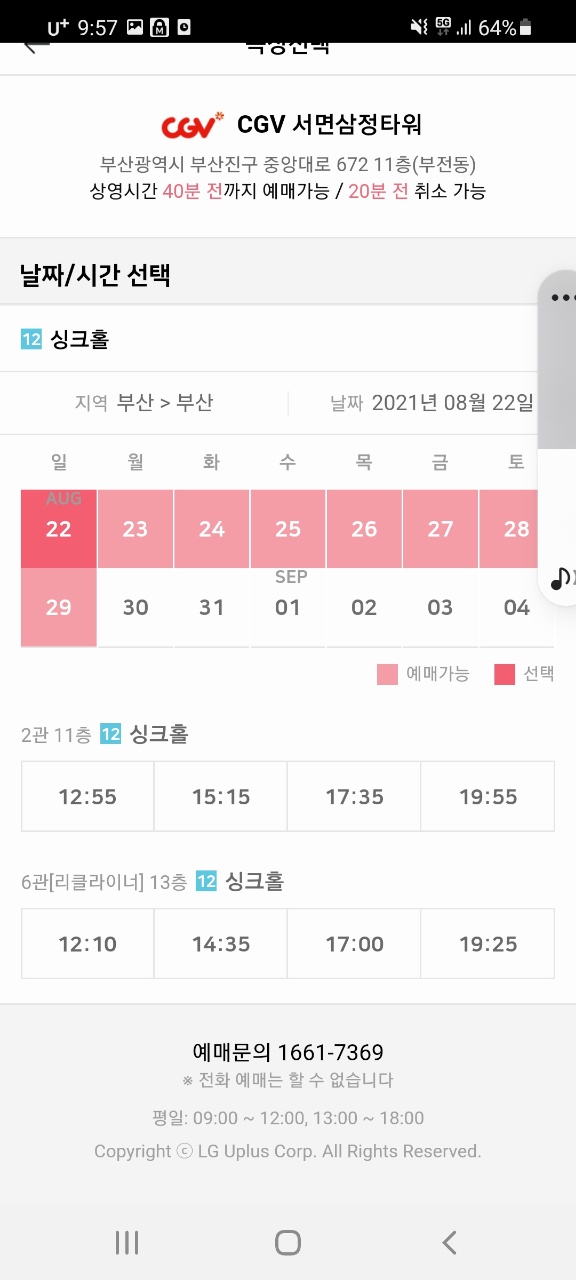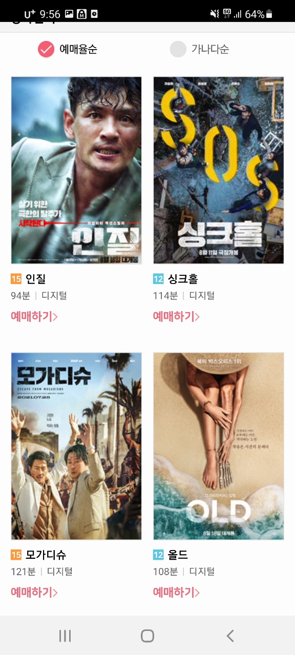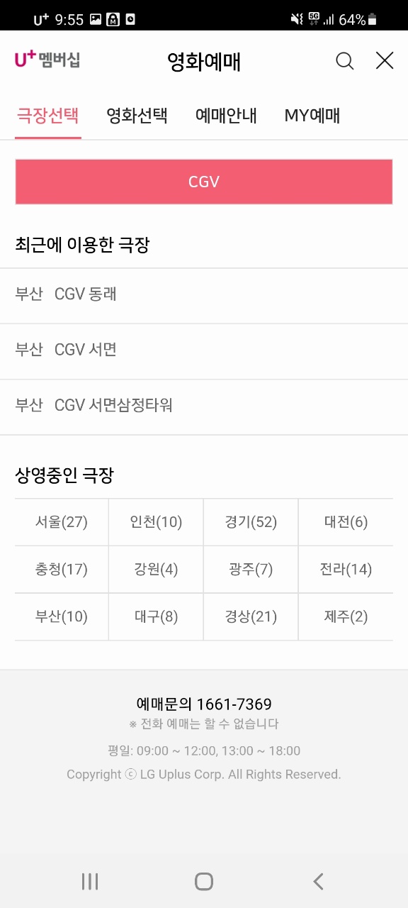 원래는 CGV, 롯데시네마, 메가박스 예매가능했였는데 몇 년 전에 메가박스 없어지고 1~2년전에 롯데시네마도 없어졌더라고요..ㅣ