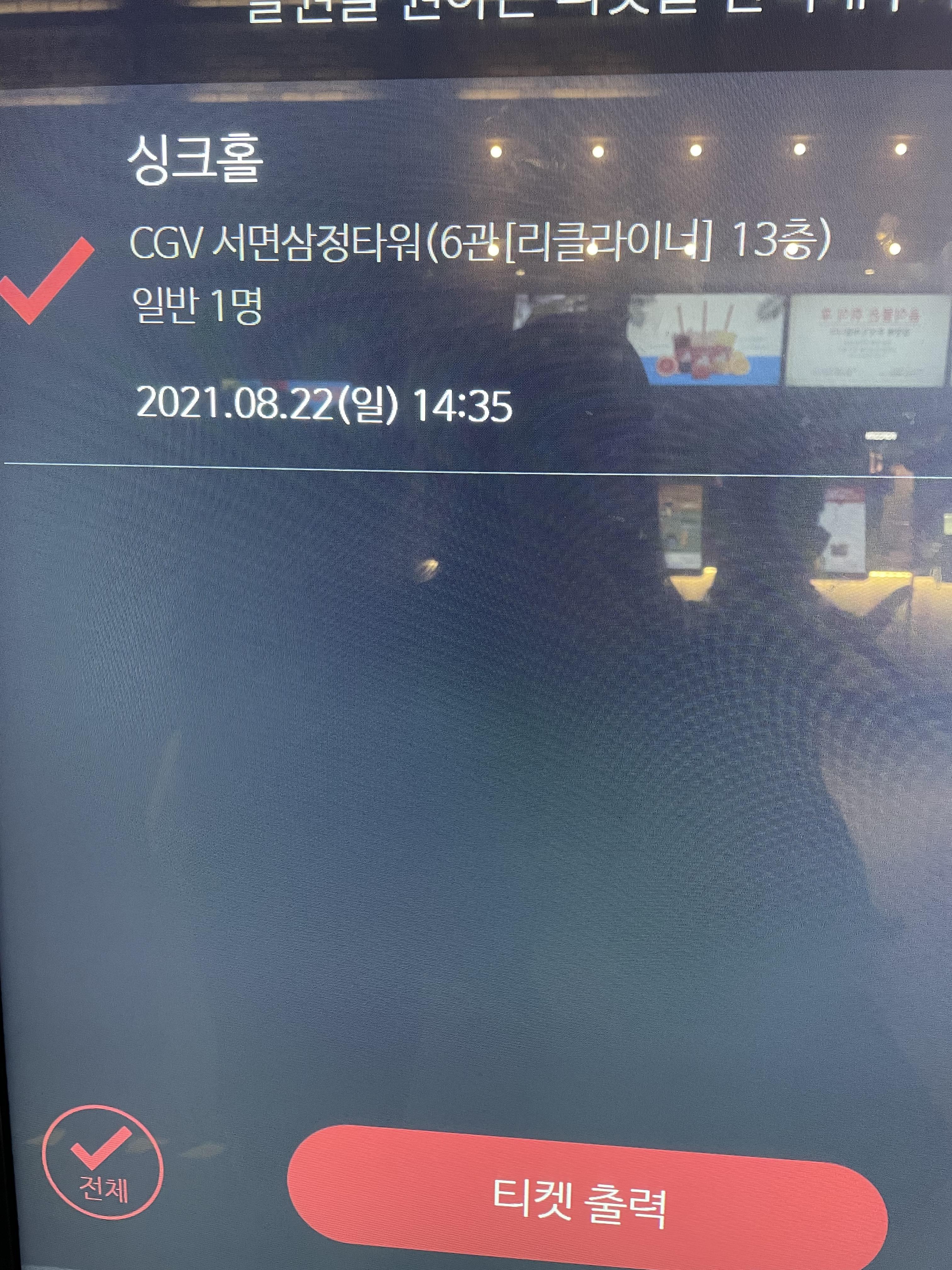 이제 영화관에 가서 매표소나 무인발권기에서 티켓 찾아서 영화 관람하면 끝입니다~!