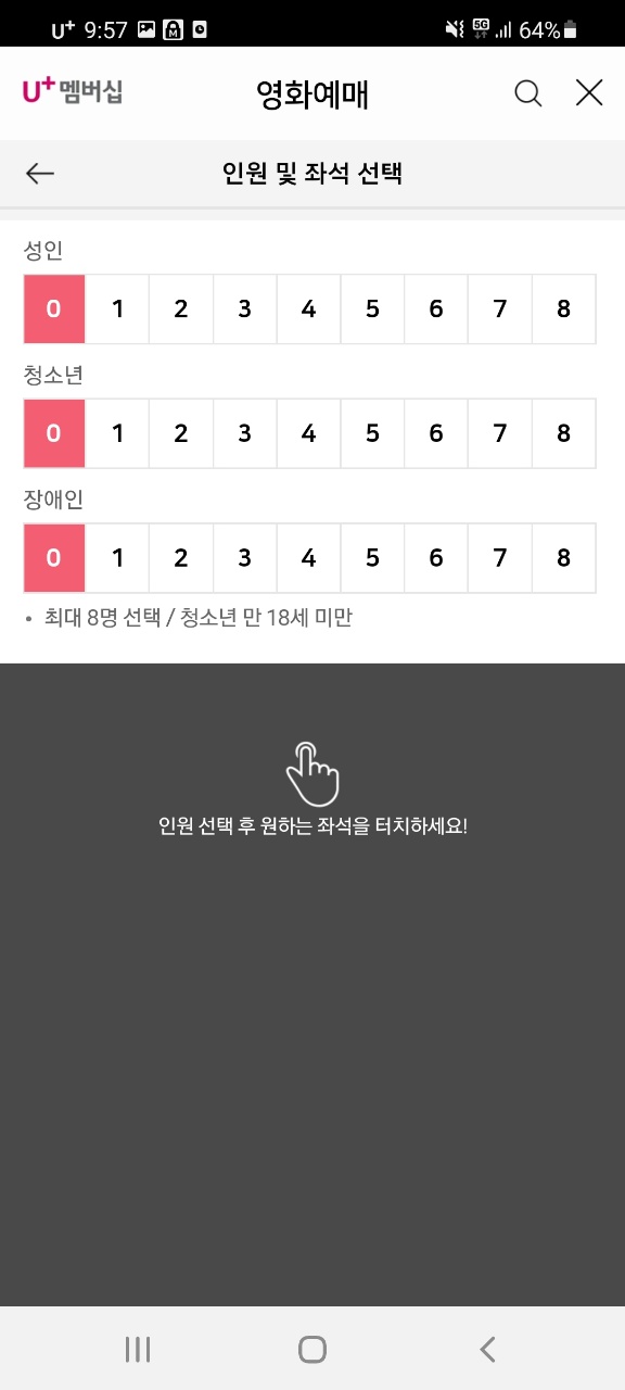 관람할 인원을 선택해주세요.