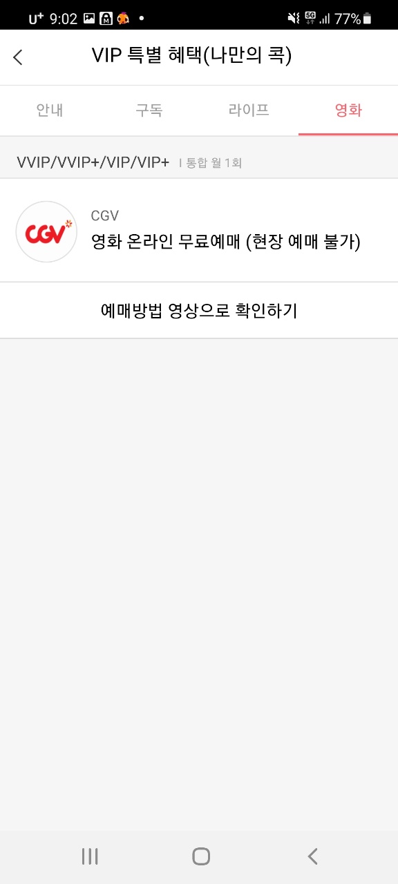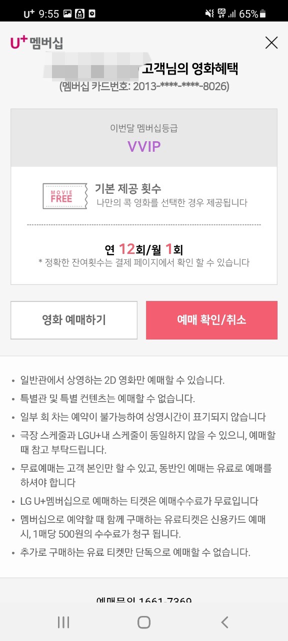 예전에는 예매가능 횟수도 연 24회, 월 2회였었는데 통신사에서 혜택을 점점 줄이더라구요..