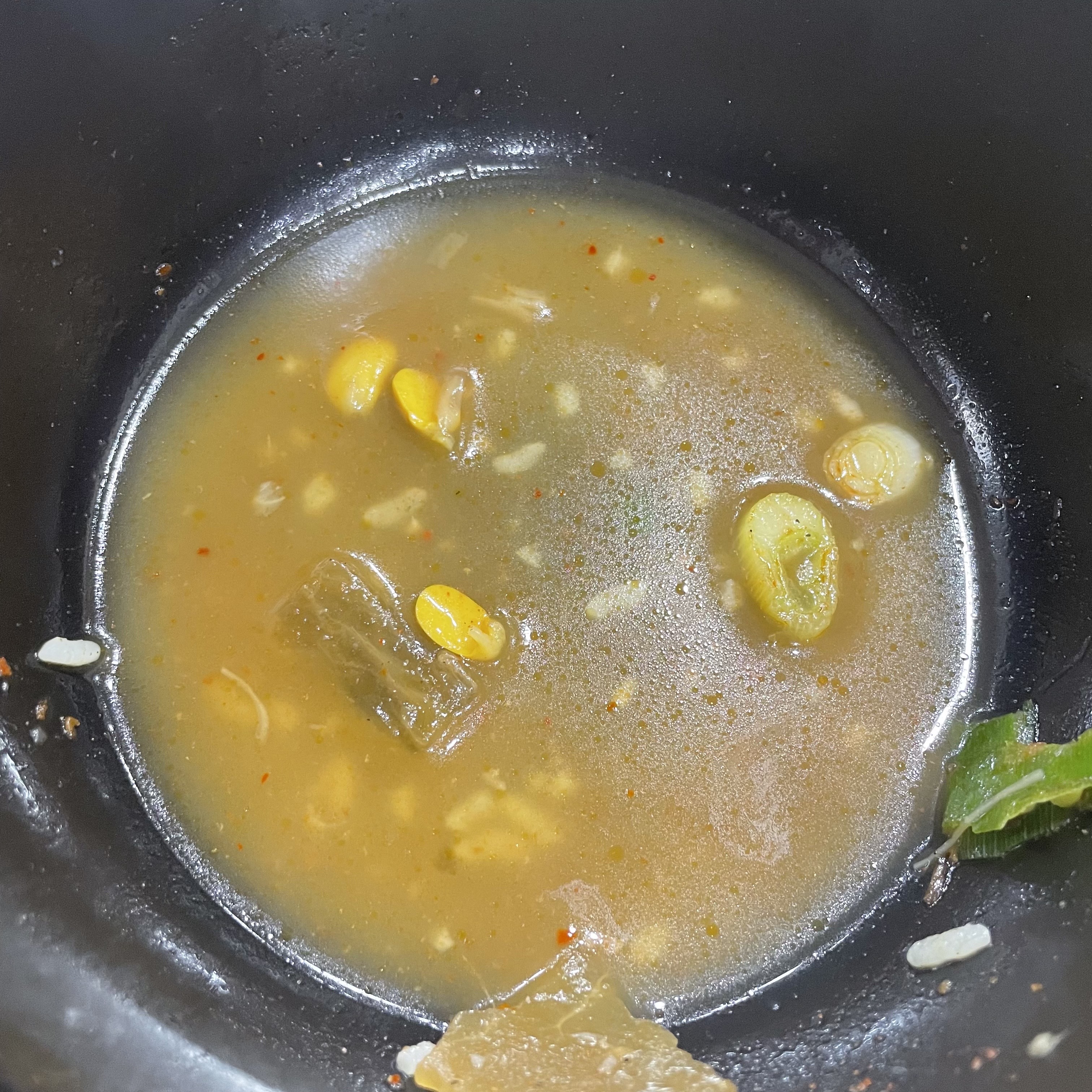 반찬은 깍두기 하나인데 각자 먹을만큼 그릇에 퍼서 먹으면 됩니다.