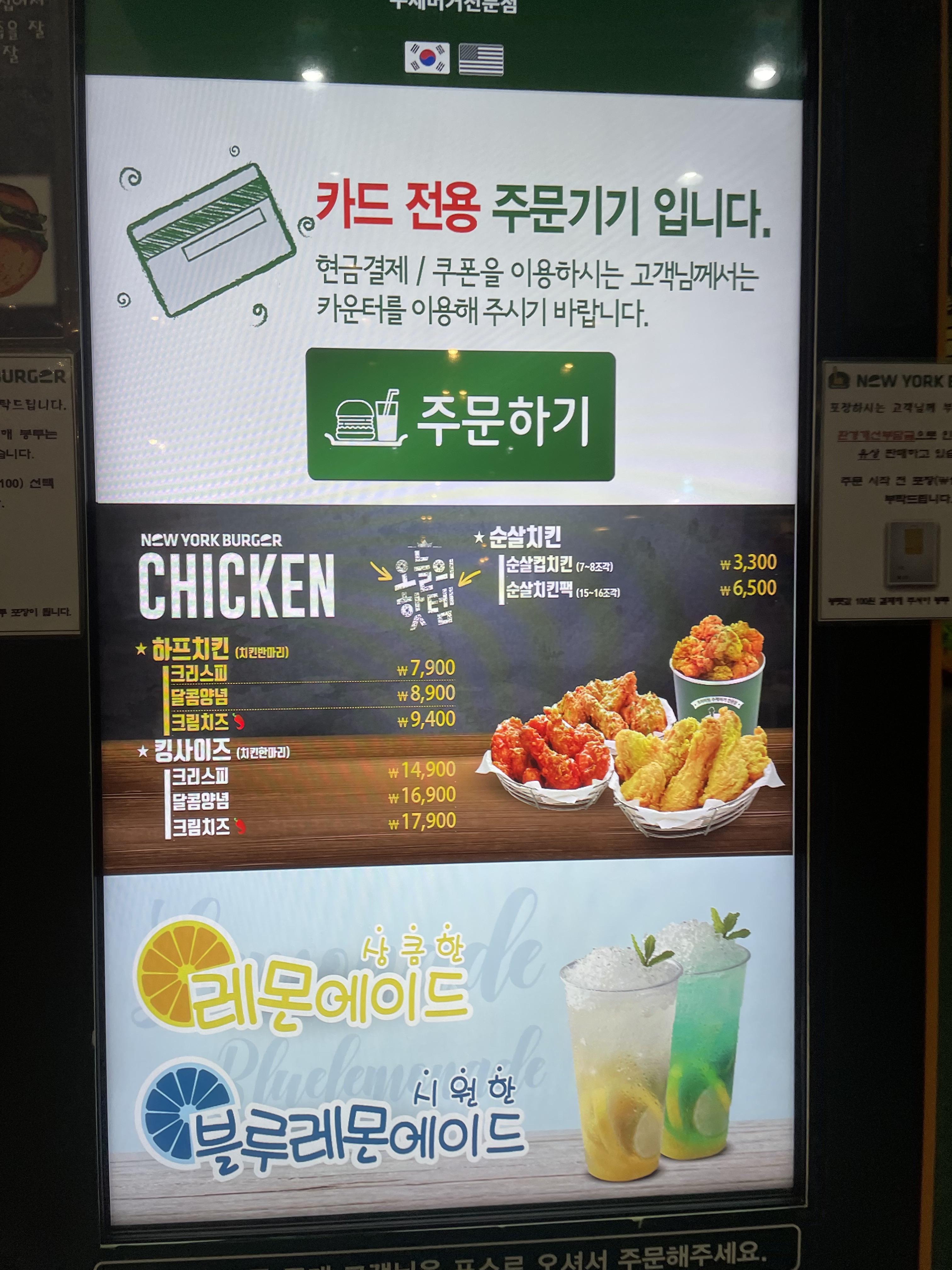 이마트 문현점 뉴욕버거는 키오스크로 주문 가능하더라구요~