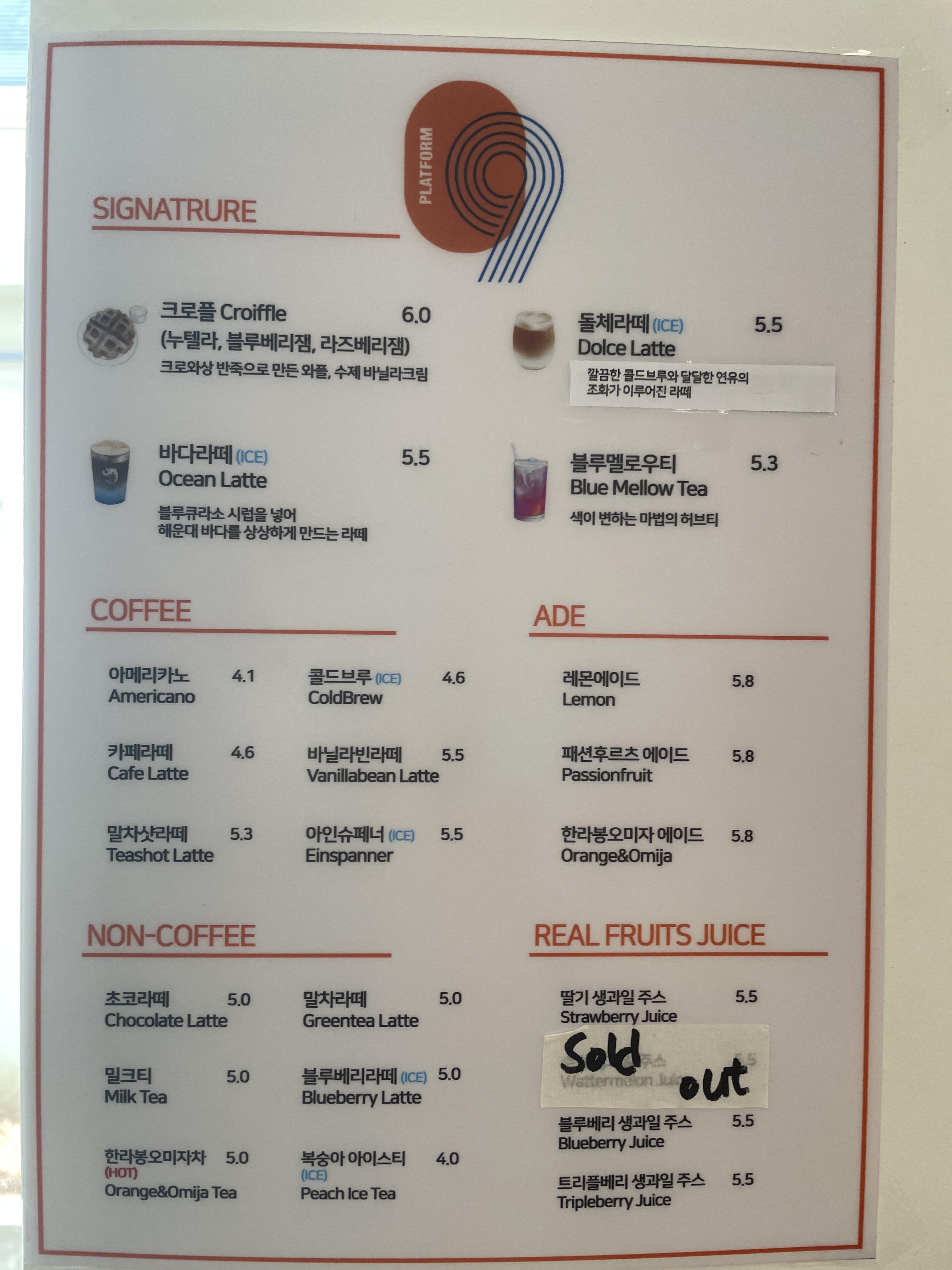 전 커피를 좋아하는 편은 아니라서 플랫폼 나인에 올때마다 한라봉오미자에이드를 시키는데