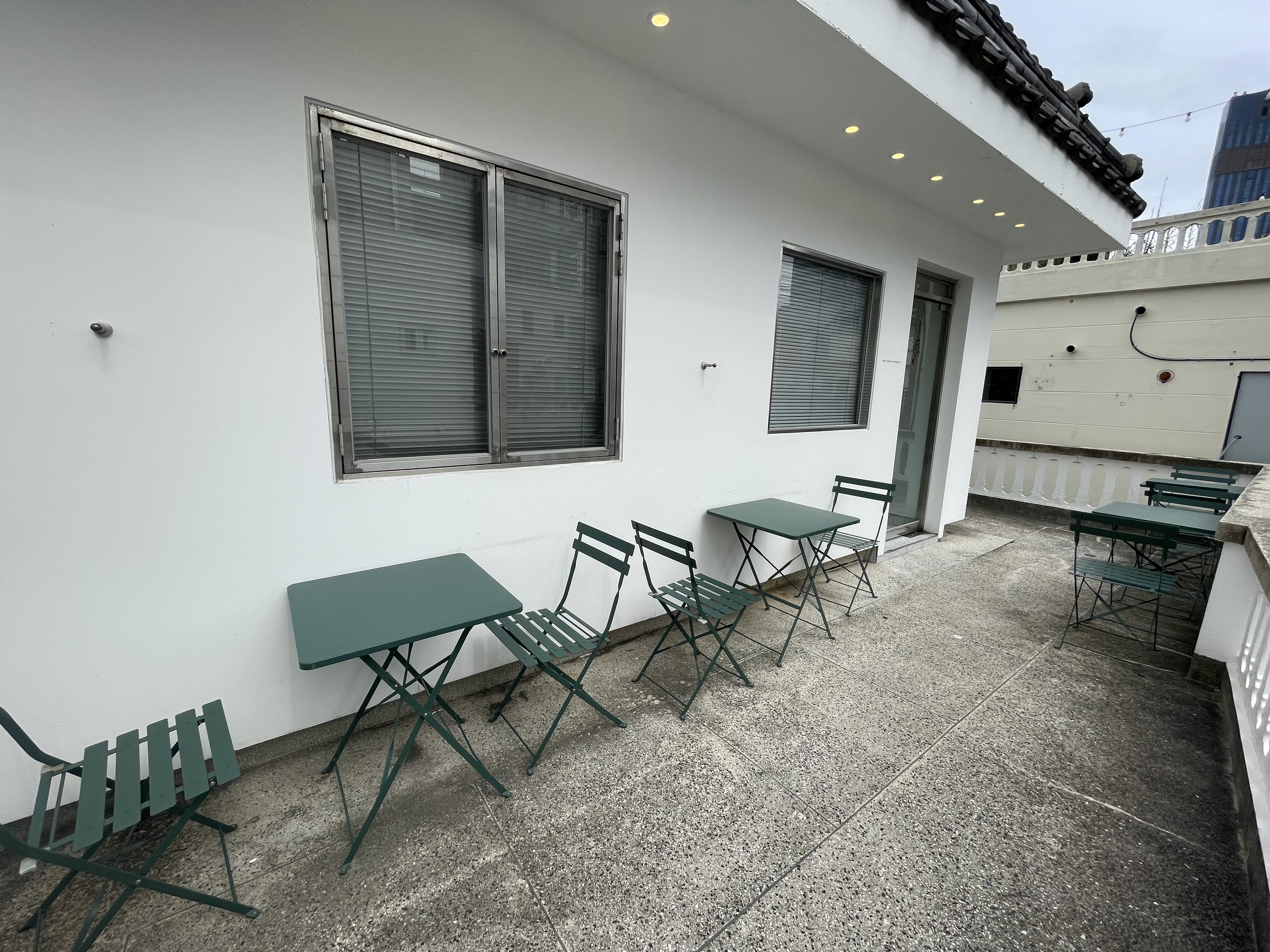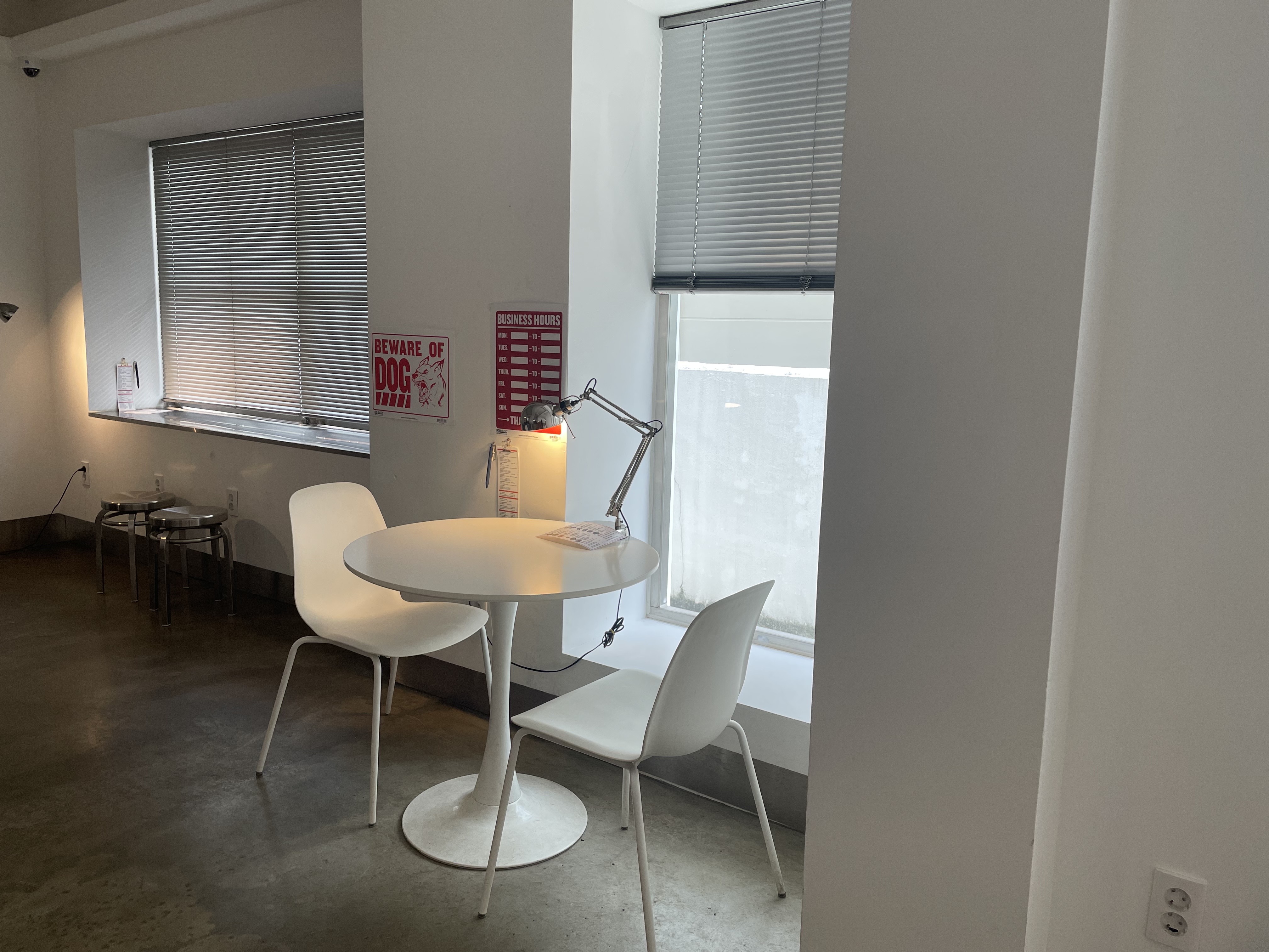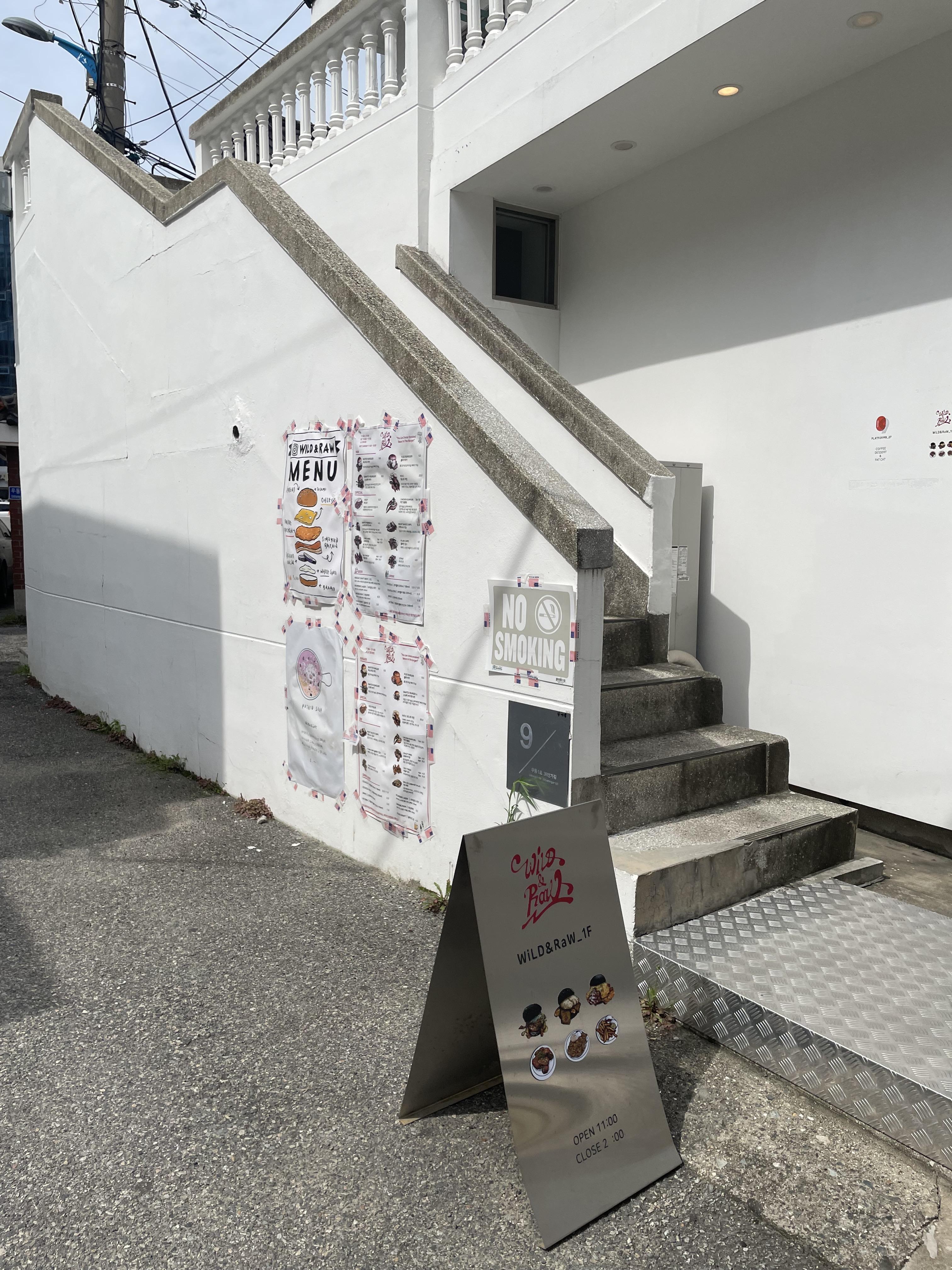 1층에서 주문하고 나와서 외부 계단으로 2층으로 올라갈 수 있습니다.