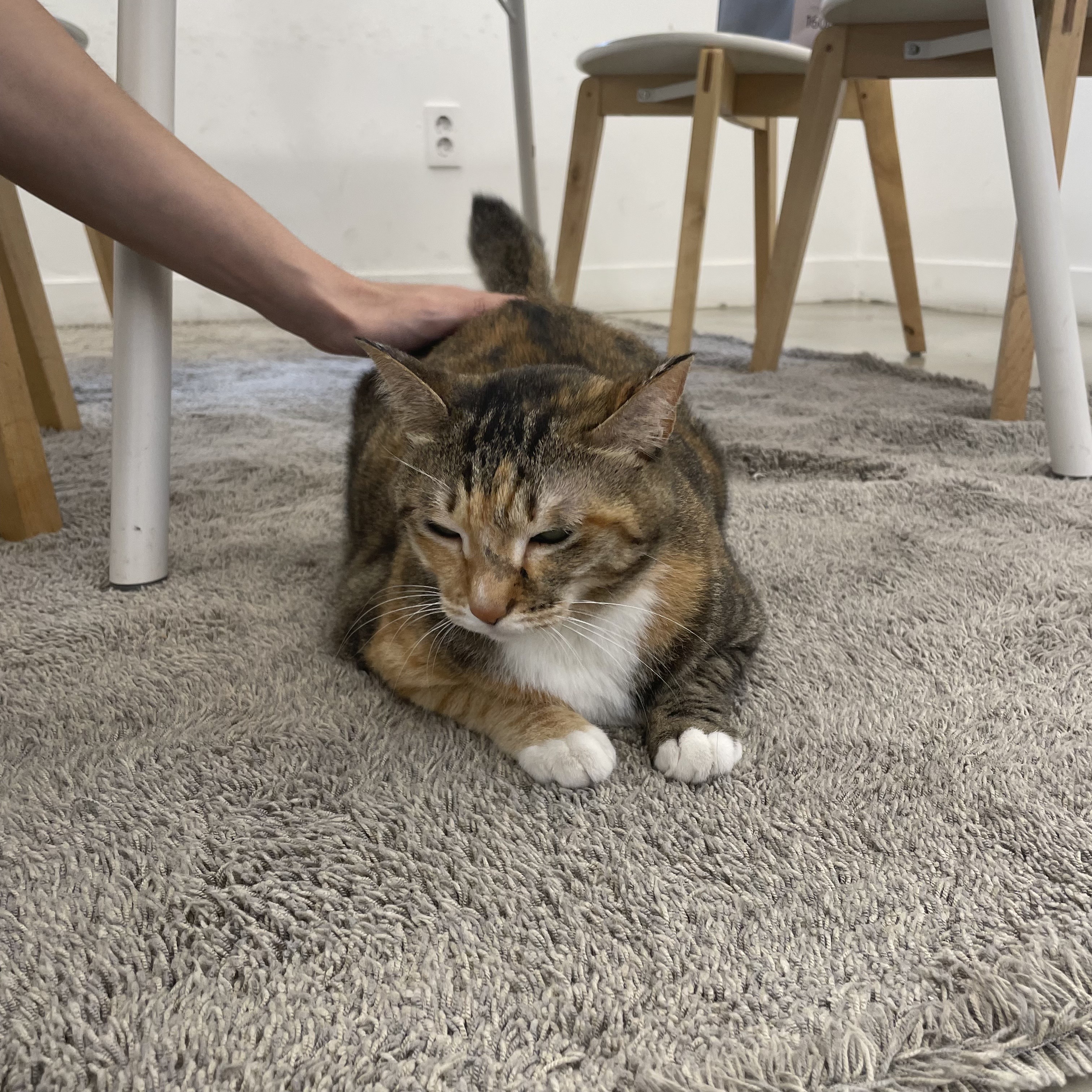 뚱냥이는 개냥이라서 사람 손을 피하지도 않고 옆에와서 몸이 부비기도 하고 옆에 앉아서 자기도 한답니다.