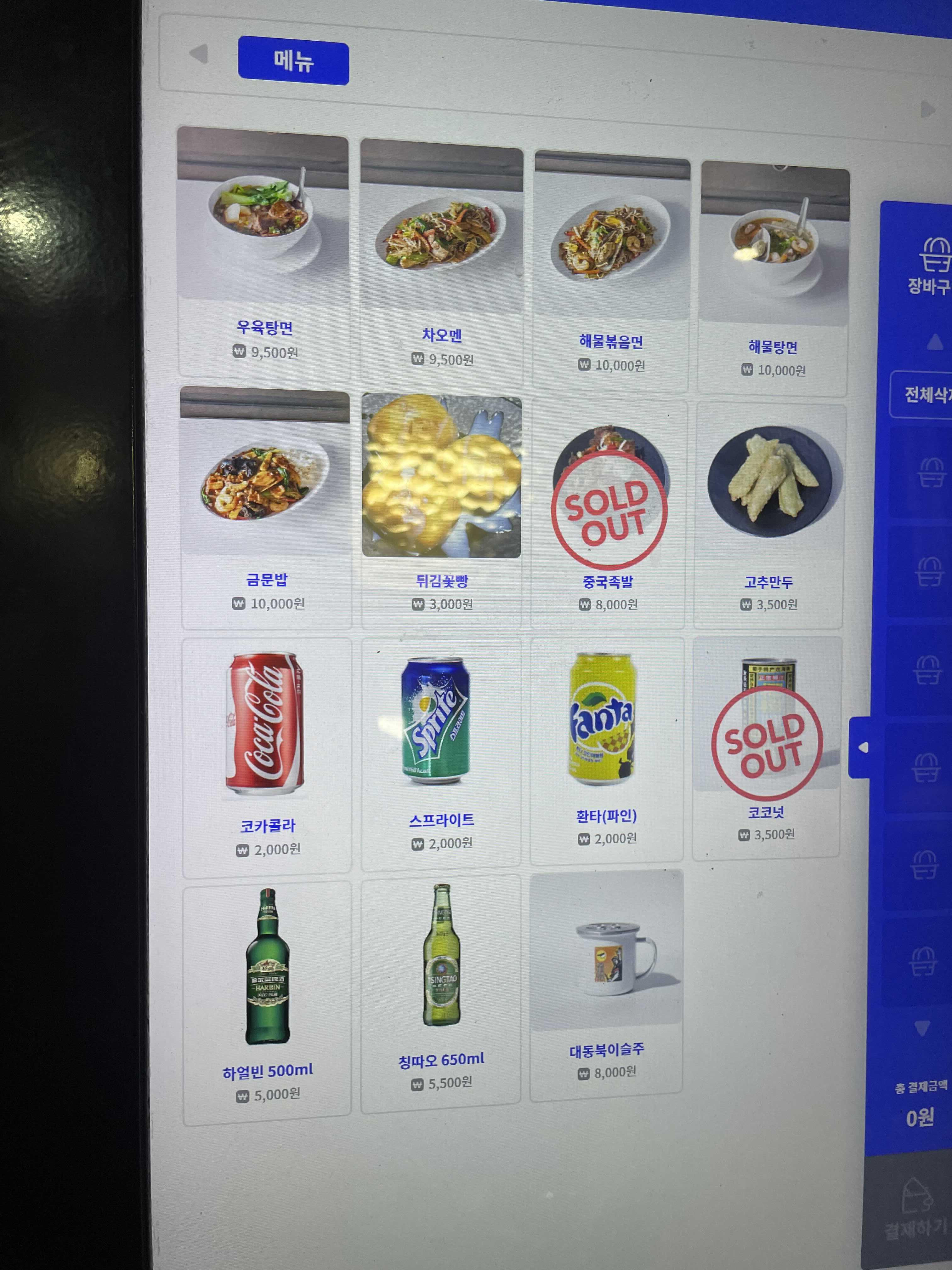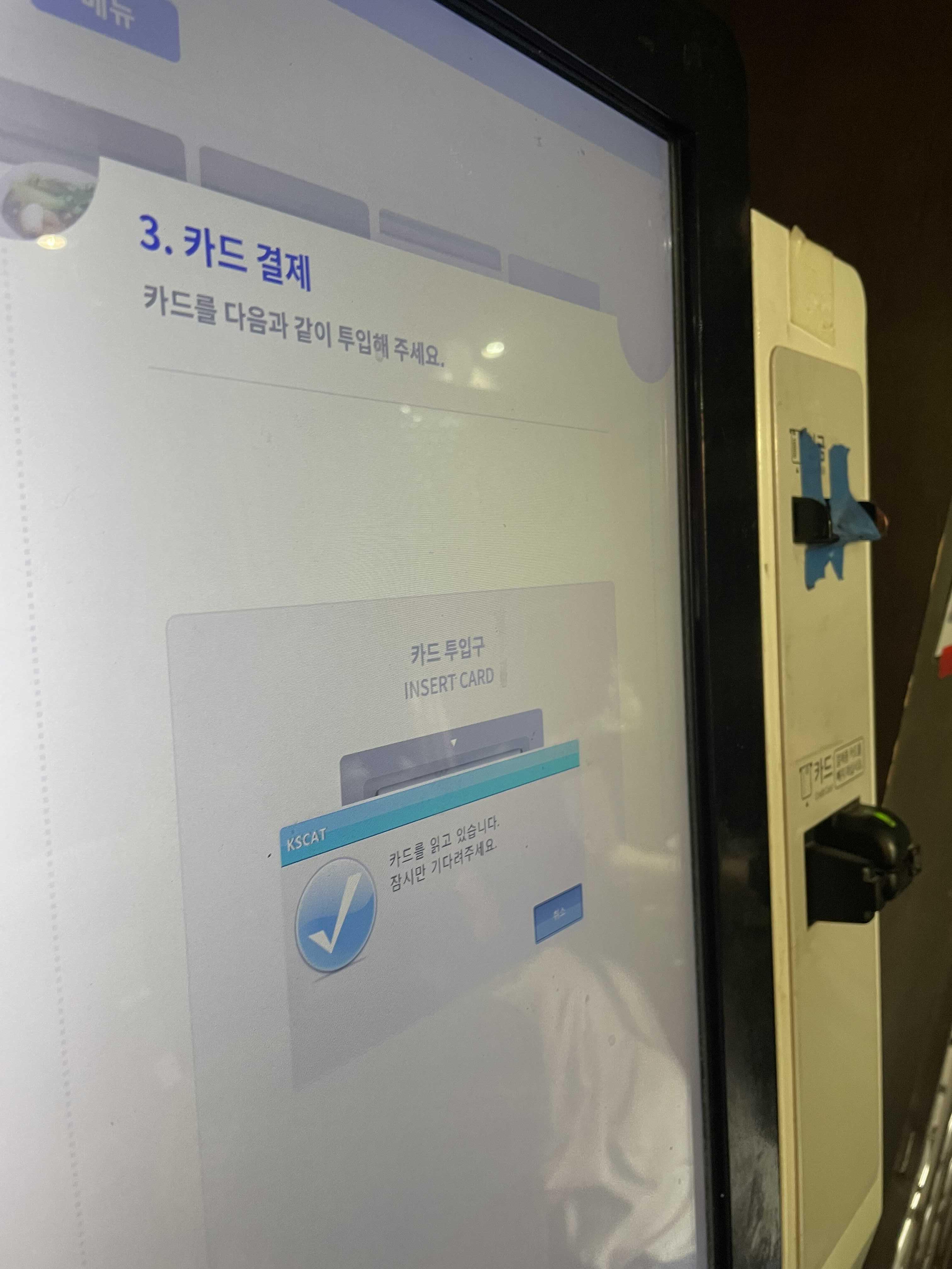 키오스크에는 현금, 카드, 페이결제 가능하다고 되어있으나 현금 투입구를 막아놓은 걸 보니 카드결제, 삼성페이 결제만 가능한 것 같습니다.