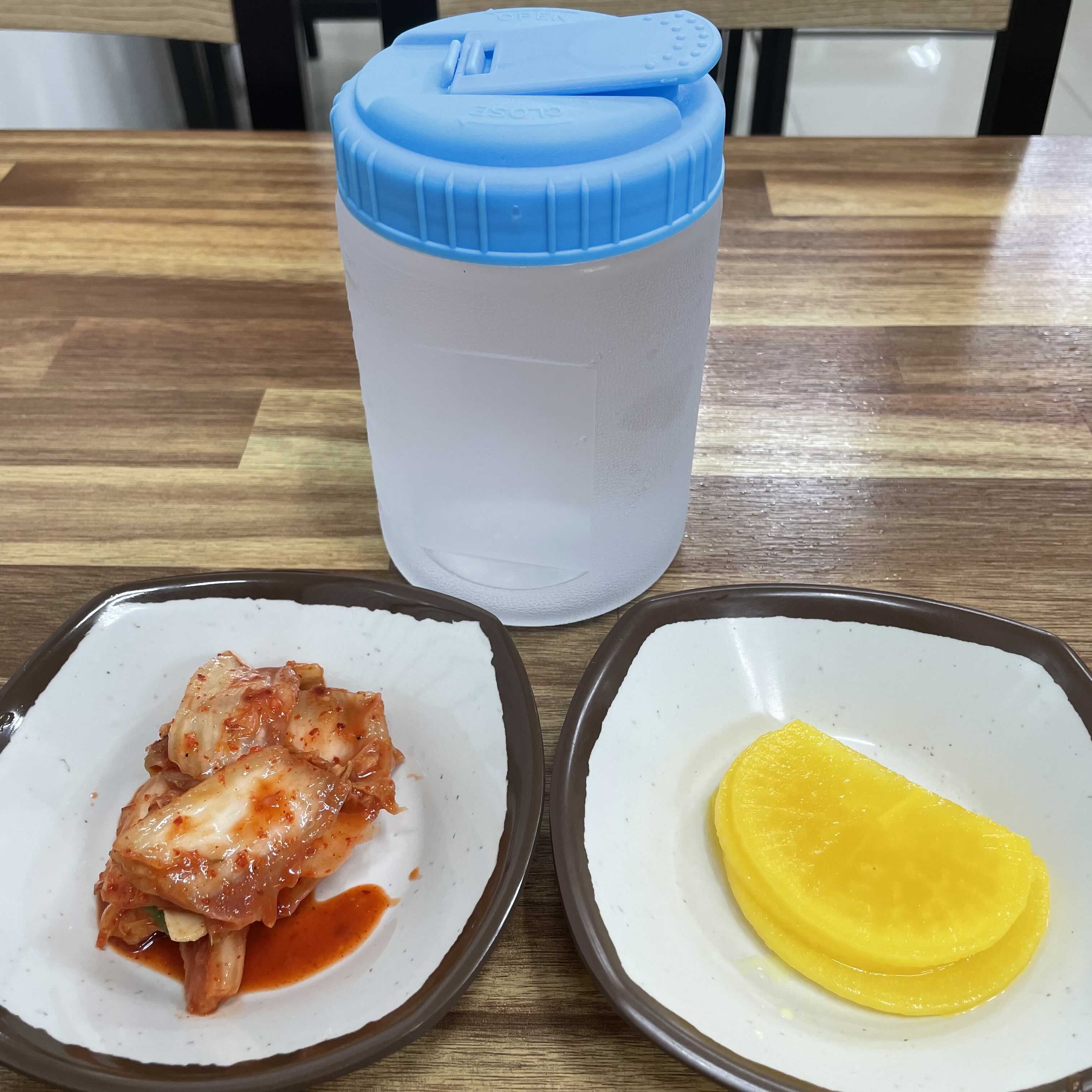 배추김치와 단무지가 기본찬으로 나오는데 김치는 담근 지 얼마 안 된 김치 같았어요.