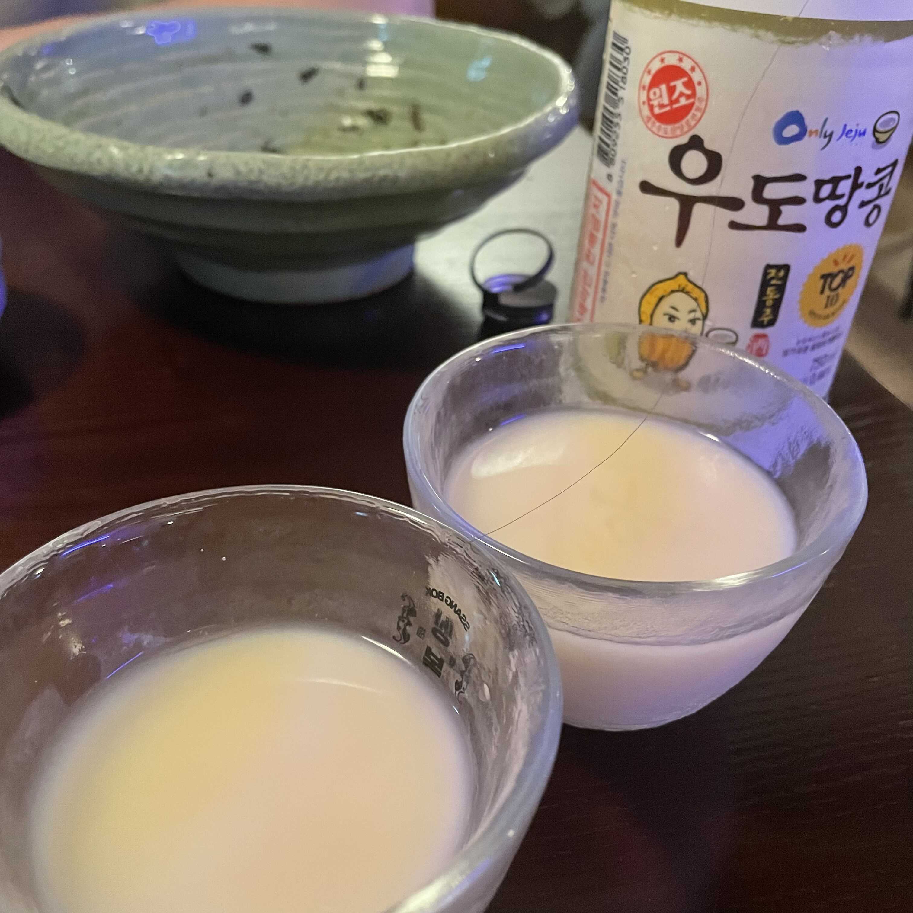 자색고구마 막걸리 다 먹고 우도 땅콩막걸리 주문했어요.