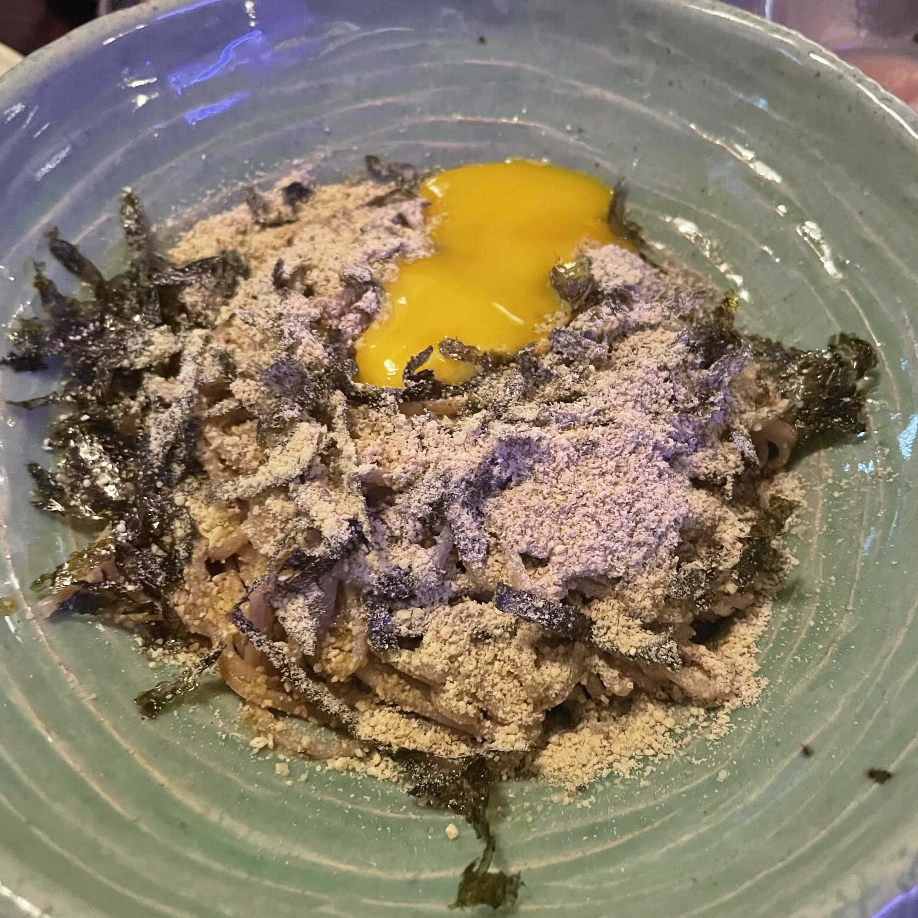 들기름, 간장, 들깨, 노른자, 김가루, 메밀면 요렇게 들어간 것 같은데 신기하게 맛있네요...?