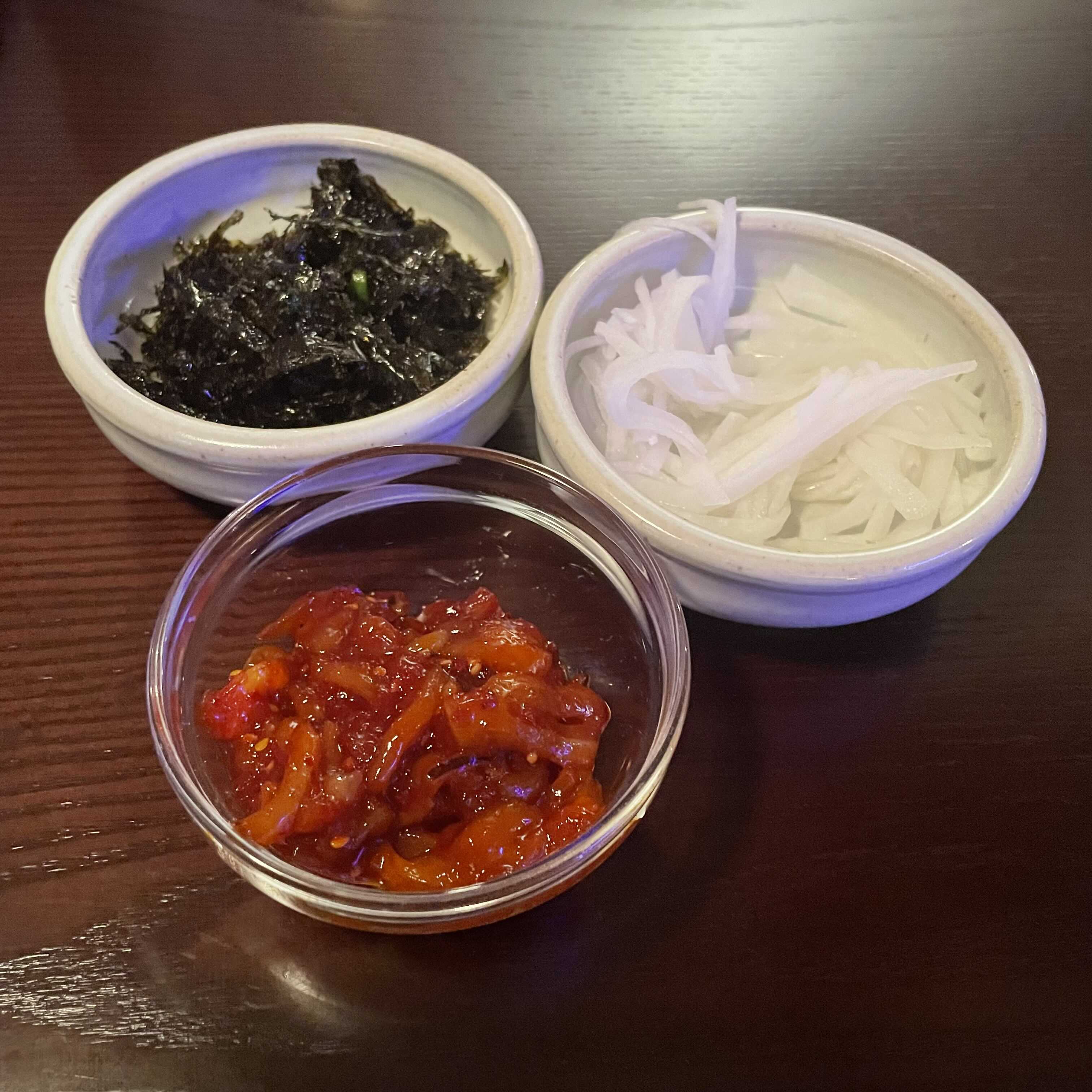 서면 쌍복 기본찬으로 오징어 젓갈, 김가루, 쌈무가 나옵니다. 심플하죠?