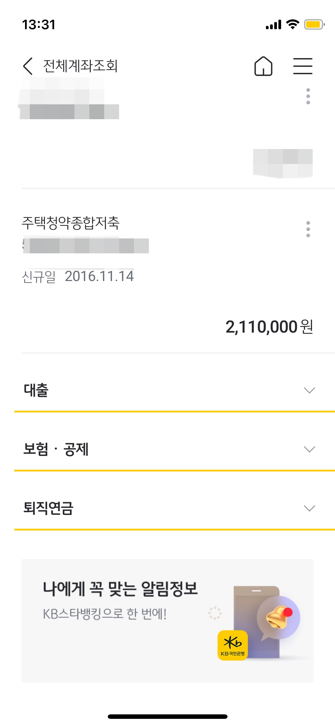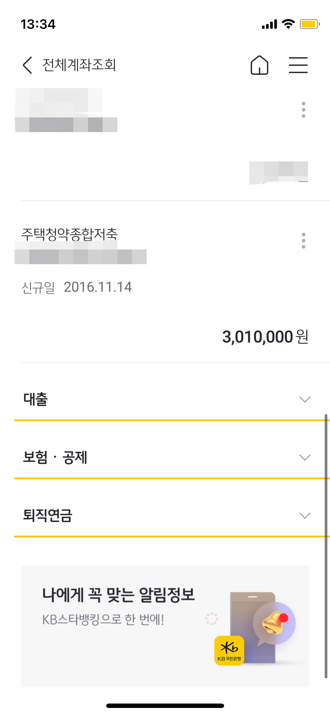 저는 국민은행에 주택청약통장이 있어 국민은행으로 보여드릴게요~