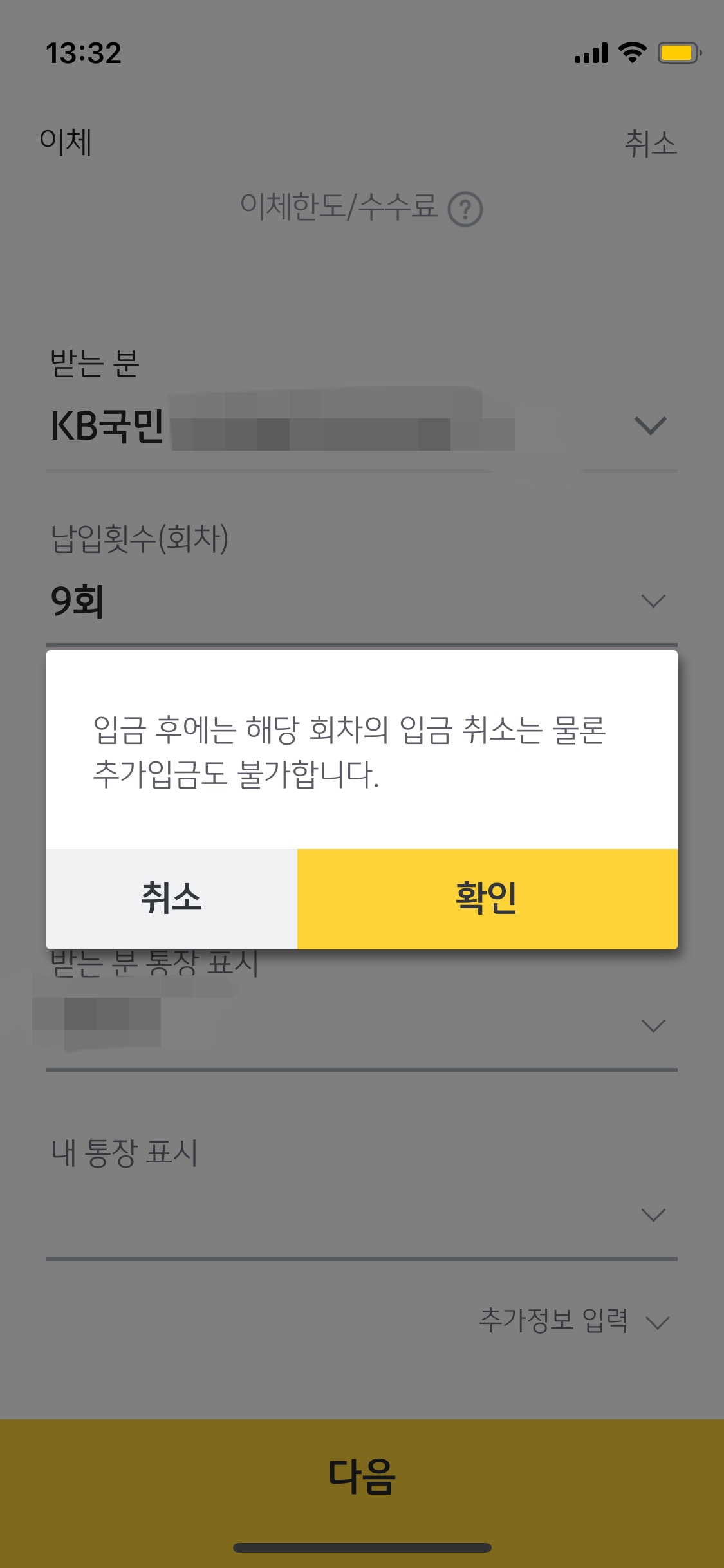 이렇게 입력하면 한번에 90만원을 추가납입 하는거지만 10만원씩 9개월 입금한 걸로 인정해줘요!
