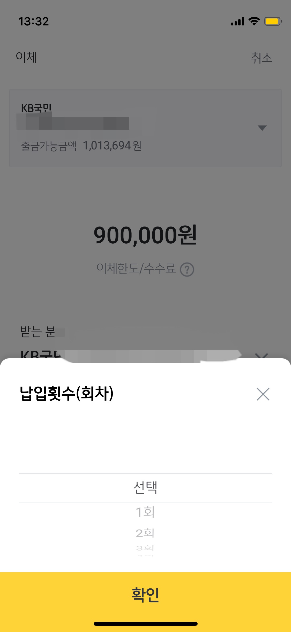 금액을 입력하면 납입횟수(회차)도 선택할 수 있어요.