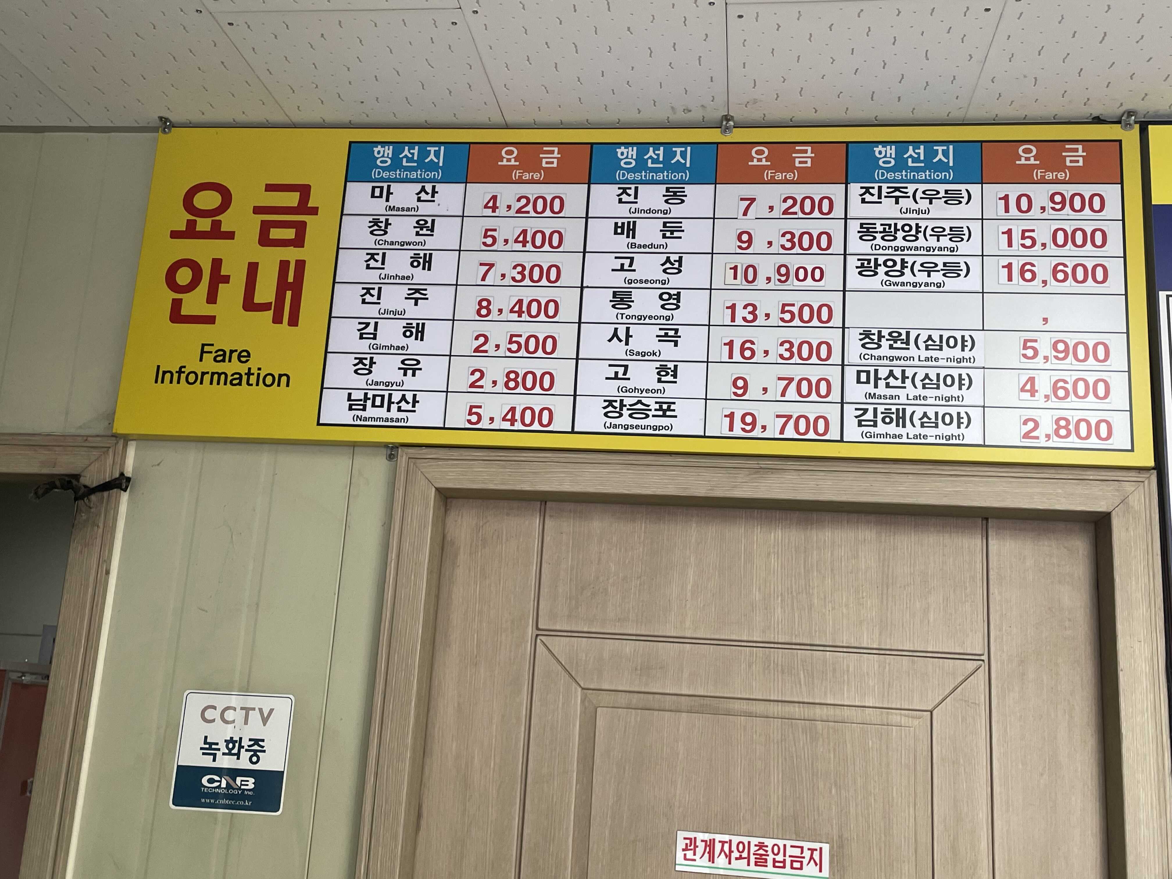 동래 시외버스 정류소에는 목적지마다 지역 이름이 기재되어있는데요.