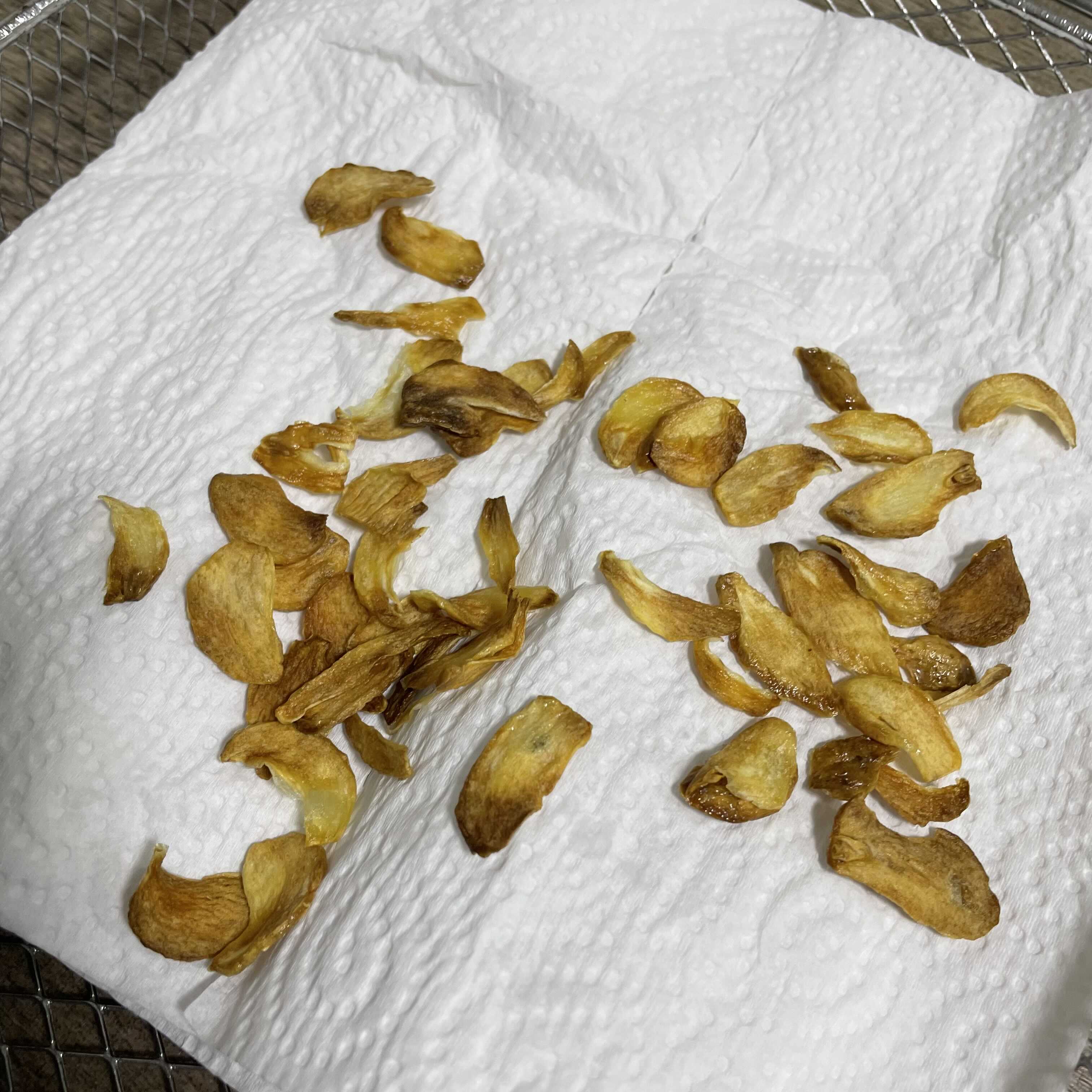 잘 튀겨진? 구워진? 마늘 후레이크는 에어프라이기에서 빼줍니다.