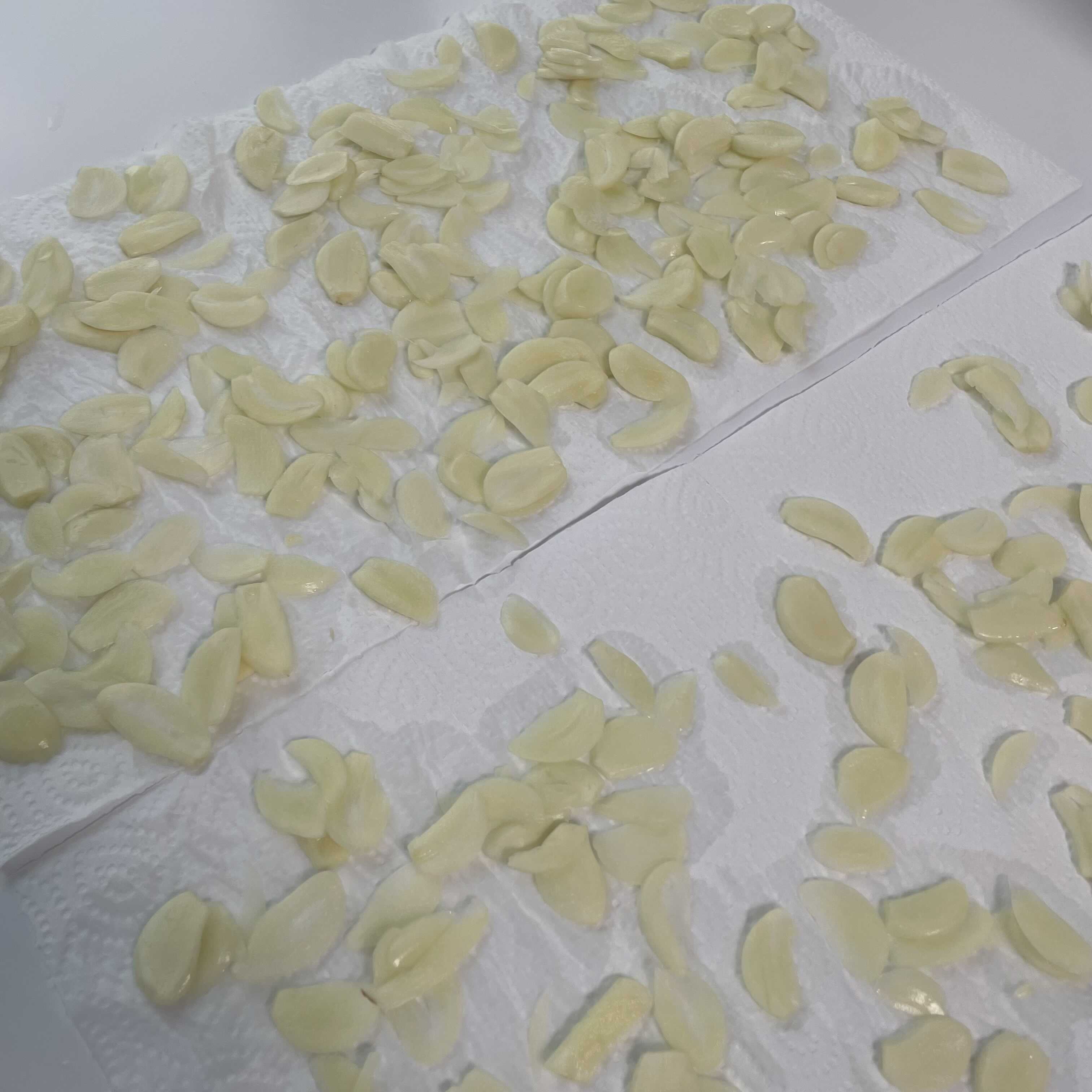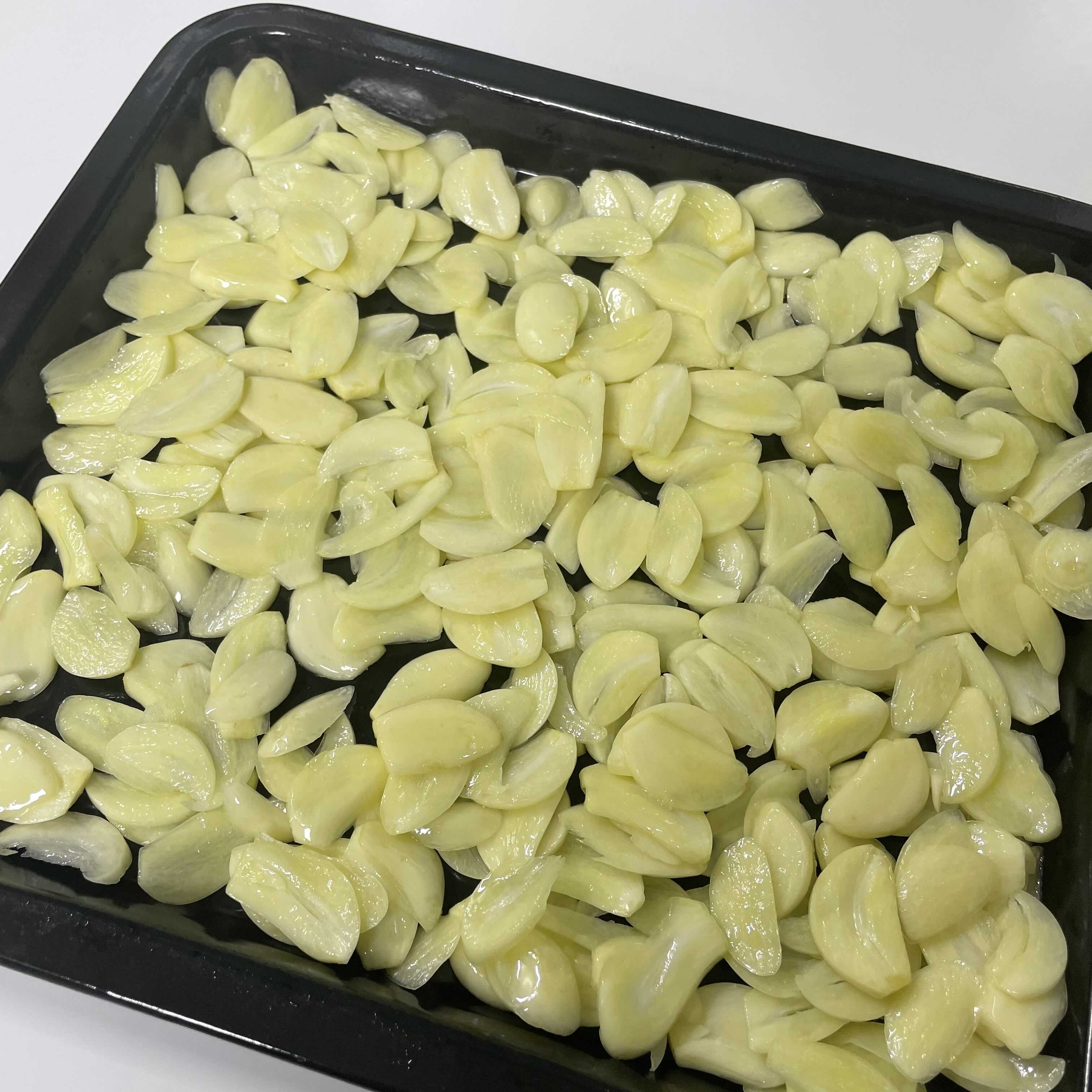 매운맛을 뺀 슬라이스한 마늘을 건조시켜주세요.