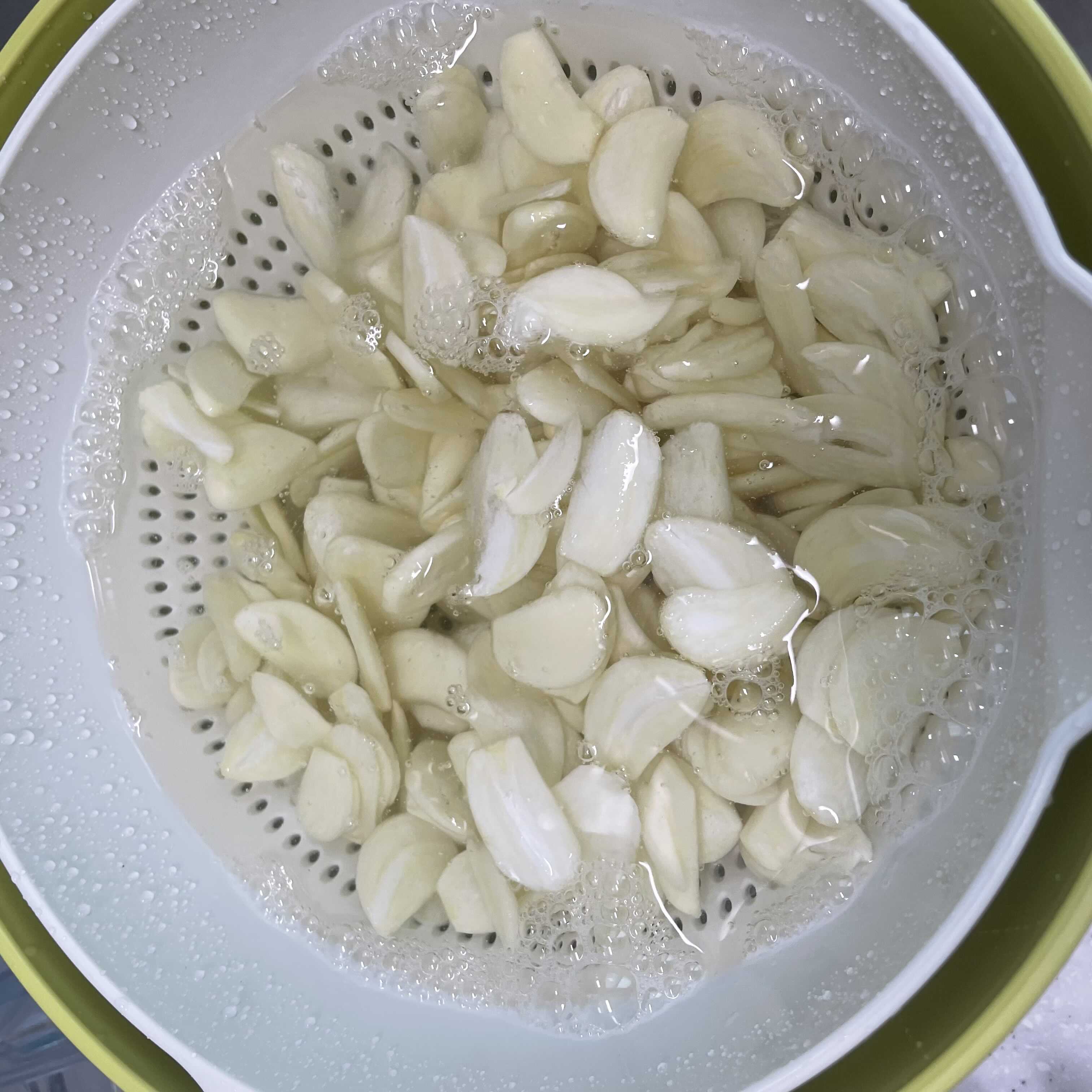 슬라이스한 마늘을 물에 두세번 헹궈주세요.