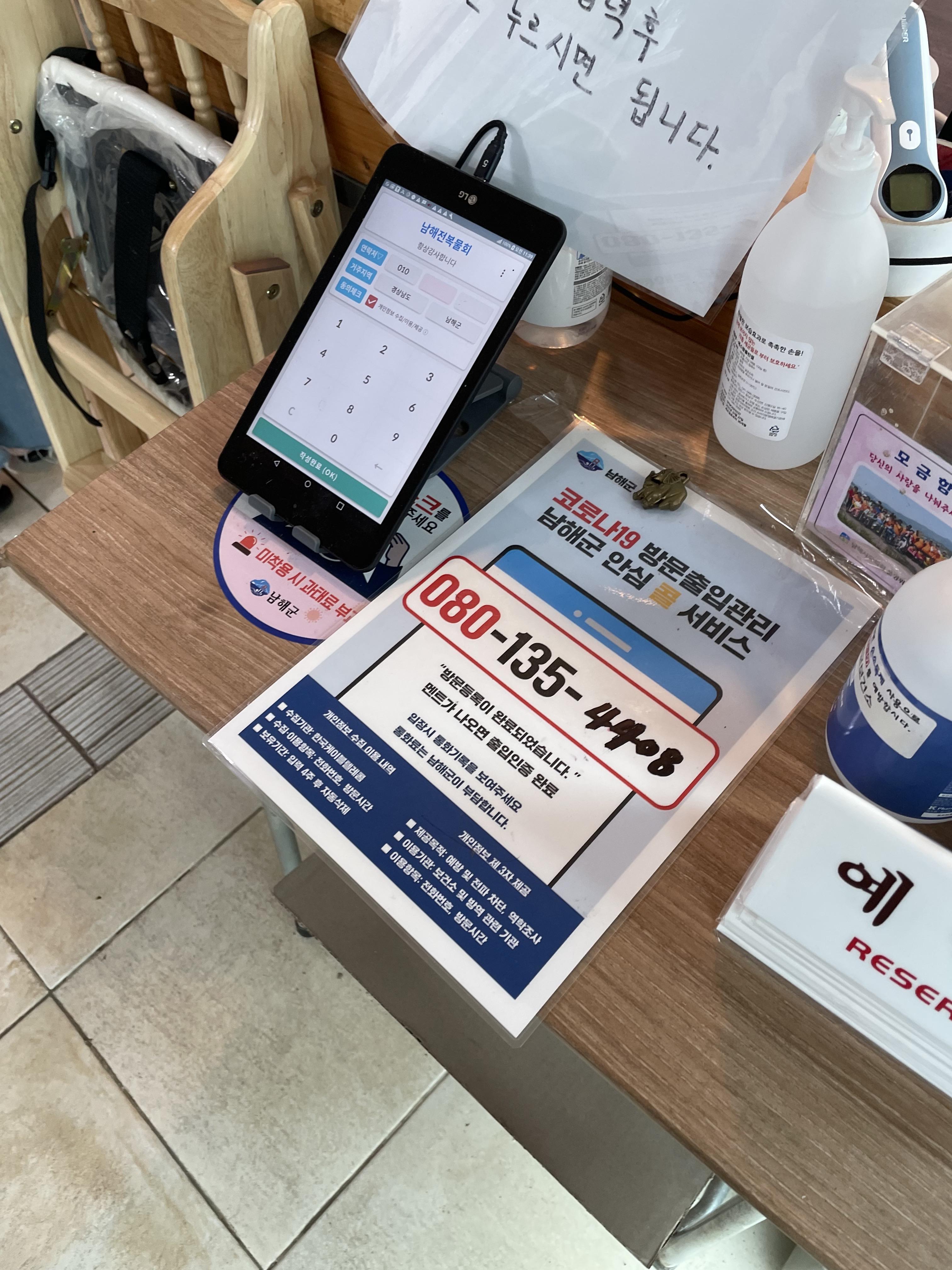 안심콜(080-135-4408) 전화하고 손소독하고 자리에 착석했습니다.